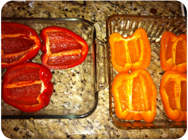 4 medium bell peppers (I avoid green because I think you end up feeling like you are burping them up all night...)